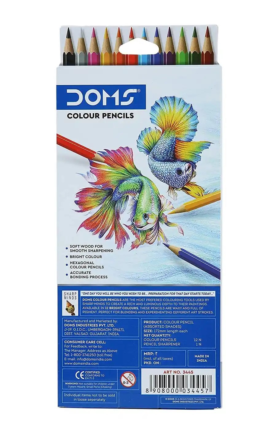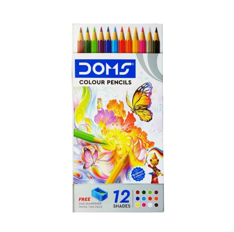 Doms Colour Pencils, 12 Shades with Sharpener